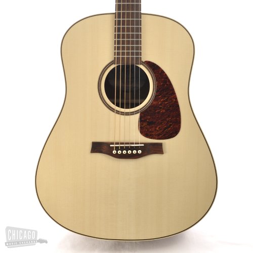 The body of the Seagull Maritime SWS acoustic guitar is solid mahogany and produces a strong sound with an emphasis on a mellow, round midrange. The Maritime SWS also features a solid spruce top, integrated set mahogany neck, chrome hardware, and an Indian rosewood bridge and fretboard. The guitar's high-gloss finish provides excellent protection but at the same time is extremely light and elastic. This is a crucial point in both the sound of the guitar and its ability to age—a thick finish muffles a guitar's vibration and blocks aging.